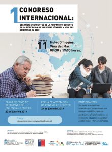 La actividad organizada por el Programa Disciplinario de Educación de Personas Jóvenes y Adultas, de la Facultad de Ciencias de la Educación de la Universidad de Playa Ancha, se realizará el 11 de julio, de 8:30 a 19:00 horas, en el Hotel O’Higgins de Viña del Mar.