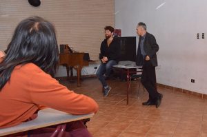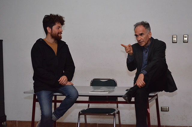 Un fructífero diálogo con estudiantes de la Facultad de Arte de la UPLA realizó el director y dramaturgo Luis Guenel Soto, quien reflexionó en torno al libro “El infarto del alma” de la fotógrafa Paz Errázuriz y la escritora Diamela Eltit y que inspira la puesta en escena “El Otro” de la compañía “Teatro Niño Proletario”.