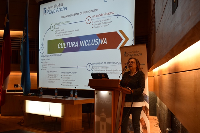 En la actividad, organizada por la Unidad de Acceso Inclusivo y Permanencia Universitaria de la UPLA, UAIP, su directora Dra. Bianca Dapelo, enfatizó que las instituciones como las universidades deben repensar su cotidianidad para crear condiciones que posibiliten a las personas desarrollar la participación en la satisfacción de sus propias necesidades vitales.