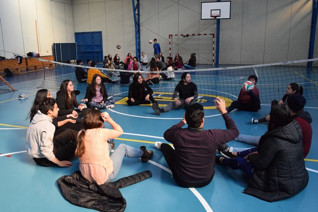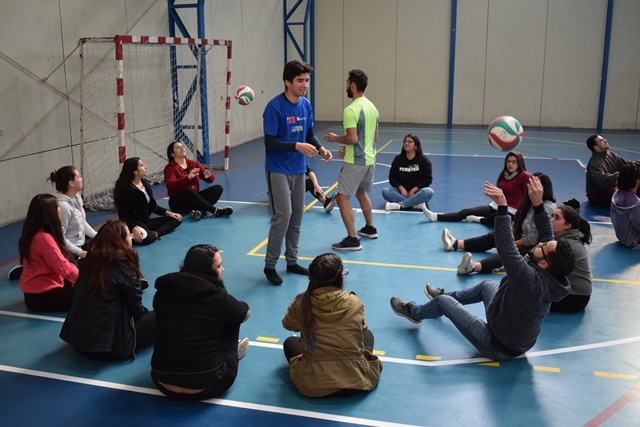 La jornada liderada por el kinesiólogo Freddy Zamora, a cargo de Deporte Inclusivo de la UAIP, consideró un taller práctico de voleibol sentado, variante de la disciplina para deportistas en situación de discapacidad, que los asistentes vivenciaron con el objetivo de acercar y experimentar las limitaciones del cuerpo, posibles de superar mediante el deporte.