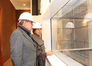 El rector de la Universidad de Playa Ancha, Patricio Sanhueza Vivanco, visitó las obras, junto a la doctora María Teresa Devia, directora del Proyecto Museo Universitario del Grabado; y Marco Muñoz, director general de Infraestructura, con quienes recorrió los tres pisos del inmueble.