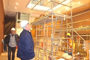 El rector de la Universidad de Playa Ancha, Patricio Sanhueza Vivanco, visitó las obras, junto a la doctora María Teresa Devia, directora del Proyecto Museo Universitario del Grabado; y Marco Muñoz, director general de Infraestructura, con quienes recorrió los tres pisos del inmueble.