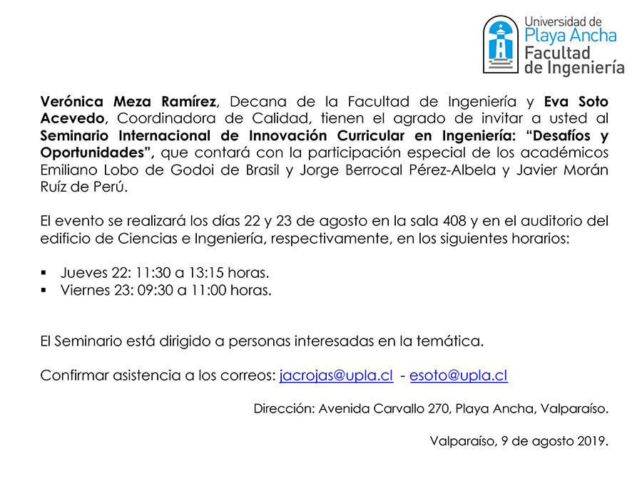 22 y 23 de agosto: Seminario Internacional de Innovación Curricular en Ingeniería «Desafíos y Oportunidades»