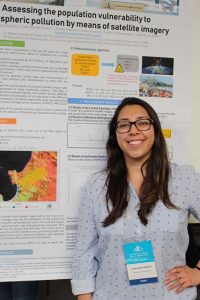 En la modalidad póster, la futura geógrafa dio cuenta del estudio “Evaluando la vulnerabilidad de la población a la contaminación atmosférica mediante imágenes satelitales”, cuyo objetivo fue evaluar la posibilidad de combinar el uso de imágenes satelitales con los sistemas de medición ambiental en la zona de Quintero y Puchuncaví y, eventualmente, generar una zonificación de las áreas más vulnerables para la población.