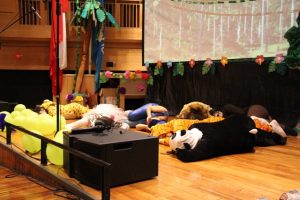 Los personajes infantiles participaron de la obra “Ensalada de Cuentos”, pero también hubo creaciones originales de animales del bosque y la selva, la Madre Tierra y sus hadas, quienes lucharon y salieron airosas para impedir la tala de árboles, todo bajo la atenta mirada de los párvulos de los establecimientos Saint André, Pasitos y Jardín Colmenita de la UPLA.