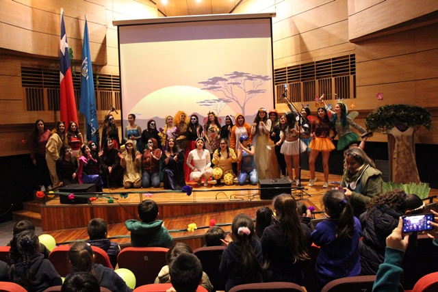 Zimba, Timón y Pumba, Elsa y Anna, Rapunzel y hasta la temida Maléfica, entre otros personajes de Disney -Pixar, se dieron cita en el Aula Magna de la Universidad de Playa Ancha caracterizados por los estudiantes de segundo año de la carrera de Educación Parvularia.