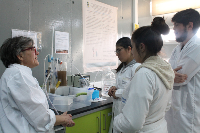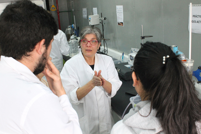 La Dra. Marisol Belmonte Soto, investigadora responsable del proyecto MEC Conicyt y coordinadora de Investigación y Postgrado de la Facultad de Ingeniería, resaltó tres aspectos: “Primero, tener la posibilidad de llevar a la práctica lo tratado en el aula sobre el recurso hídrico, en este caso de aguas residuales; luego generar una instancia para que estudiantes y funcionarios interesados en la temática pudieran participar y finalmente, que una profesora que conoce del tema, en gran envergadura, que ha trabajado, que ha sacado patentes, que tiene cientos de publicaciones y que ha trabajado con empresas de España pueda hacer este trabajo de laboratorio, como lo fue la Dra. Mosquera”.