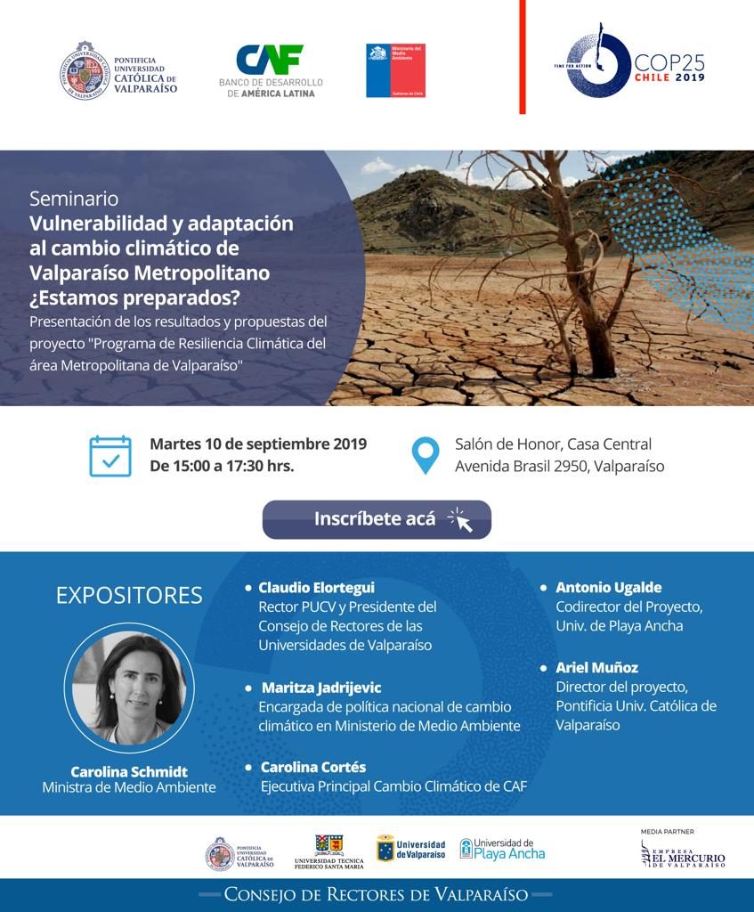 10 de septiembre: Seminario Vulnerabilidad y adaptación al cambio climático de Valparaíso Metropolitano ¿Estamos preparados?