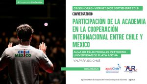 La Universidad de Playa Ancha será nuevamente sede de un encuentro internacional, cuando este viernes 6 de septiembre se realice en Casa Central el Conversatorio “Participación de la Academia en la Cooperación Internacional entre Chile y México”.