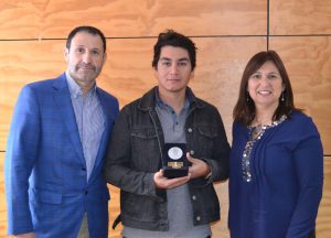 El Vicerrector del Campus San Felipe de la UPLA, Dr. Patricio Ibáñez y la directora del Instituto Tecnológico, Carmen Gloria Godoy, hicieron entrega de la distinción como mejor egresado de su promoción el técnico en geología, Augusto Chaparro.