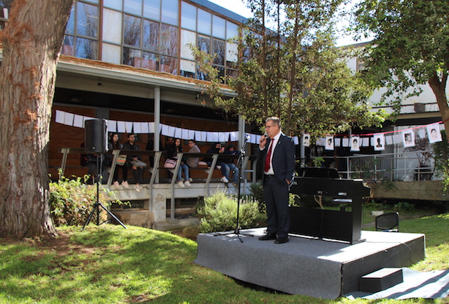 “Es imposible dejar pasar este día (11 de septiembre) sin conmemorar los 46 años de uno de los hechos más trágicos que ha vivido la historia de Chile. Quizás el más complejo, porque se produce una división, pero también una persecución de carácter político-ideológico en contra de un sector de nuestra sociedad… Por lo tanto, esta tragedia deja una herida muy fuerte y en nuestra institución deja mártires que están inscritos en un monumento en el patio de la institución”, dijo el rector, quien agregó que este acto da cuenta de que este tipo de hechos nos se puede volver a repetir.