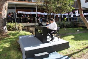 Uno de los momentos más emotivos de la ceremonia se vivió durante la interpretación del destacado pianista y exestudiante, José Riveros Donoso, quien se ha presentado en más de 25 países del mundo de los cinco continentes. Con un repertorio basado en el folclor chileno y Latinoamericano, interpretó una de las piezas musicales, en compañía de su alumno de seis años, Renato Chávez Rojas.