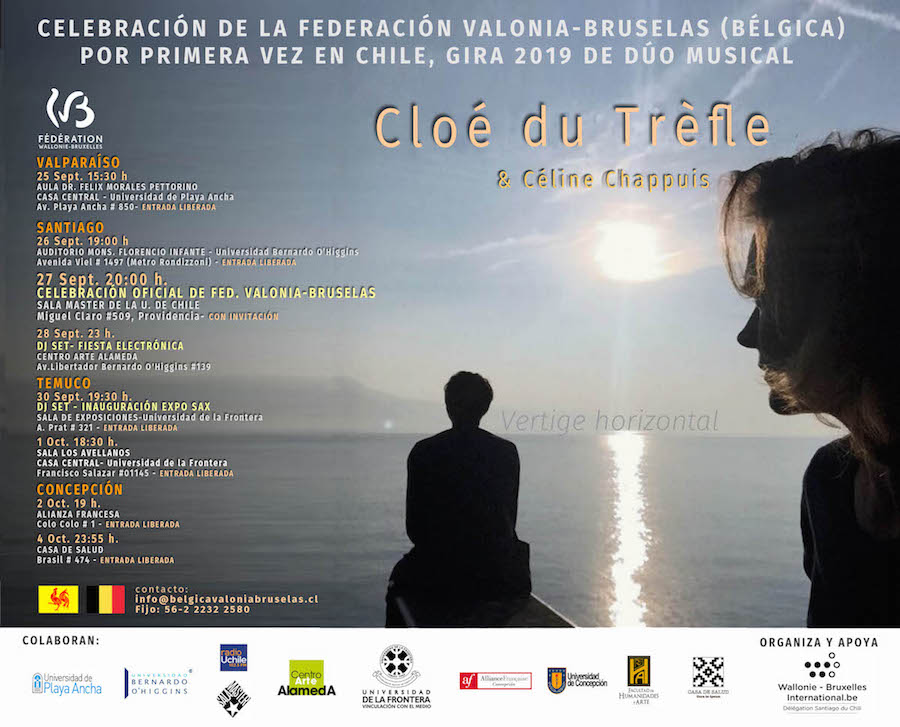 aporte y apoyo de Valonia-Bruselas internacional (WBI) de Bélgica, CLOÉ DU TRÈFLE ha sido invitado, por primera vez a Chile, para realizar una gira