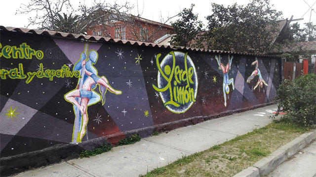 61 horas pedagógicas conllevó la realización de un mural colectivo en dependencias del Centro Cultural Verde Limón de Quilpué, propuesta desarrollada y ejecutada por tres estudiantes de la carrera de Pedagogía en Artes Plásticas de la Facultad de Arte de la UPLA.