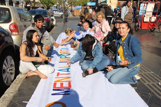 La actividad, que incluyó la elaboración de un lienzo y la instalación de un módulo donde se entregó orientación, se realizó en el marco de la celebración del Mes de la Salud Mental.