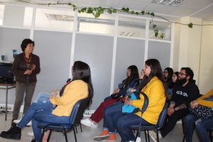 Los 23 estudiantes (a los cuales se sumarán otros tres próximamente), recibieron una inducción este lunes 7 de octubre, de parte de la directora de Gestión Curricular, Catalina Rojas y luego del equipo de la Dirección de Selección y Admisión, con quienes hicieron un recorrido por distintos espacios de la universidad.