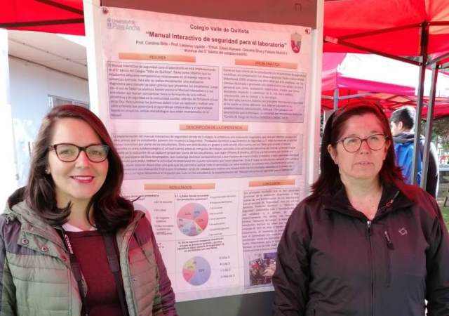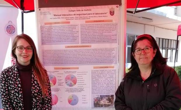 Las estudiantes UPLA presentaron en modalidad póster el trabajo “Manual interactivo de seguridad para el laboratorio”, el cual se está implementando en el quinto año básico del Colegio Valle de Quillota.