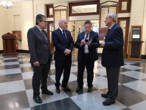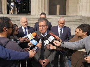 Los rectores de la Universidad de Playa Ancha, Patricio Sanhueza; de la Universidad de Valparaíso, Aldo Valle; y de la Universidad Técnica Federico Santa María, Darcy Fuenzalida; junto al vicerrector académico de la Pontificia Universidad Católica de Valparaíso, Nelson Velásquez, y las abogadas patrocinantes Inés Robles, de la Clínica Jurídica de la UV, y Ana Karina Timm, directora de Equidad e Igualdad de Género de la UPLA, llegaron hasta la Corte de Apelaciones de Valparaíso para interponer un recurso de protección en contra de Carabineros.