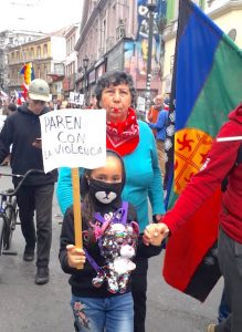 “Las frases, las oraciones o slogan… generalmente (la pancarta) es una frase espontánea, es muy irónica. Nace desde los afectos, la emoción, a veces de la rabia, angustia o miedo. Es una voz de reclamo, es acusación, aclamación y que se entronca con esos aspectos carnavalescos que se producen en nuestras manifestaciones masivas, ya sea por festivales, o pasacalles. La pancarta entra en ese espíritu carnavalesco de gracias, de festividad, como forma de contrarrestar el mal momento”.