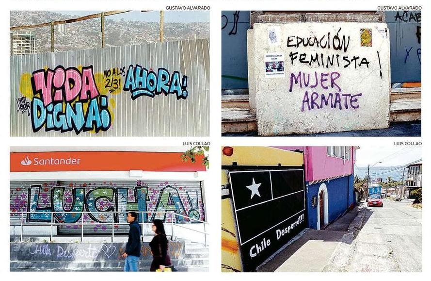 Y si bien en Chile hay artistas que se han desarrollado en el muralismo -como el porteño Inti Castro, o la dupla avecindada en la ciudad Un Kolor Distinto-, tras el 18 de octubre ha provocado también que los muros se transformen en un lugar donde conviven tanto trabajos estéticos como todo tipo de mensajes. De esta manera, las paredes se han vuelto los «cuadernos o diarios de este estallido social», asegura el doctor en Filosofía y filólogo, Roberto Loebell.