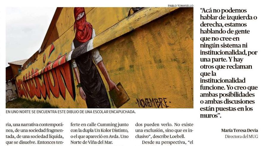 «Acá no podemos hablar de izquierda o derecha, estamos hablando de gente que no cree en ningún sistema ni institucionalidad, por una parte. Y hay otros que reclaman que la institucionalidad funcione. Yo creo que ambas posibilidades o ambas discusiones están puestas en los muros», sostiene.