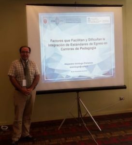 Parte de los resultados y conclusiones de su estudio doctoral, desarrollados en la ponencia “Factores que facilitan y dificultan la integración de estándares de egreso en carreras de pedagogía” expuso el Dr. Alejandro Verdugo Peñaloza, en la primera versión del Congreso de Docencia en Educación Superior “CODES 2019: desafíos de la relación investigación-docencia de pregrado”, realizado en La Serena.