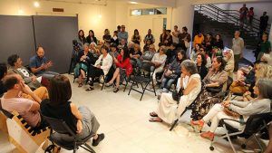 Cabe señalar que en el acto de inauguración de la muestra se realizó un conversatorio con la autora y distintas personalidades del mundo trans, quienes dialogaron con estudiantes de las carrera de Diseño además de familiares, artistas y poetas.