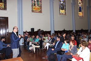 Juan Álvarez, director general de Vinculación con el Medio de la UPLA, precisó que la presencia de Fernando Atria en esta casa de estudios, obedece al compromiso que ésta tiene con la comunidad, a fin de debatir sobre todos los aspectos relevantes de la ciudadanía, entre ellos, la nueva Constitución.
