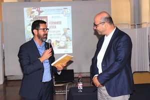 Tras la exposición de Fernando Atria, Álvarez le entregó como presente el libro «Alemanes en Valparaíso. Siglo XIX», de la editorial Puntángeles de nuestra Casa de Estudios.
