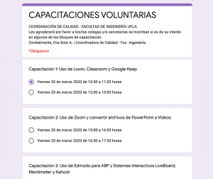 Es sabido que las plataformas web para profesores han sufrido diversas modificaciones en el último tiempo, algunas han caducado otras surgen con nuevos y mejores atributos. En ese contexto más la situación de cuarentena que vive el país hay compromisos académicos que se deberán realizar a distancia y resulta prioritario que los y las docentes manejen estas nuevas tecnologías.