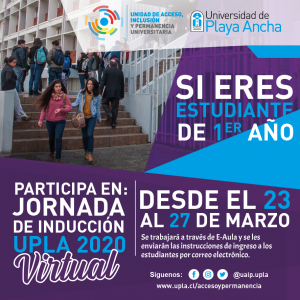 Totalmente en línea se desarrollará el programa de inducción a la vida universitaria que deberán cumplir los nuevos estudiantes de la Universidad de Playa Ancha, entre el lunes 23 y el jueves 26 de marzo.