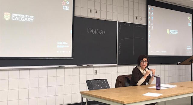 “Tenía considerado realizar un par de presentaciones acerca del proyecto; participar en las clases e integrarme al grupo de investigación de LARC. Mi trabajo lo realizaría directamente con el director del Centro, el Dr. Pablo Policzer. Organizamos un calendario de actividades que incluía clases a los alumnos de ciencias políticas. Esto, enmarcado en el curso States and Regimes in Latin America, donde expuse acerca del cuestionamiento al modelo Democrático en Chile, que tiene como resultado el denominado estadillo social. También se consideró la elaboración del proyecto Dossier LARC, para ser publicado en los Cuadernos del Centro de Estudios del Pensamiento Latinomericano (CEPLA). A lo anterior se sumarían exposiciones, conversatorios y reuniones de trabajo con algunas investigadoras del Departamento de Ciencias Políticas de la Universidad de Calgary. Específicamente, con la Dra. Regina Cochrane, que trabaja temas de género y política, justicia social y neoliberalismo; y con la Dra. Roberta Rice, cuyo campo de investigación es la política Indígena y política latinoamericana. Algunas de estas actividades alcancé a realizar y otras fueron suspendidas por la pandemia”.