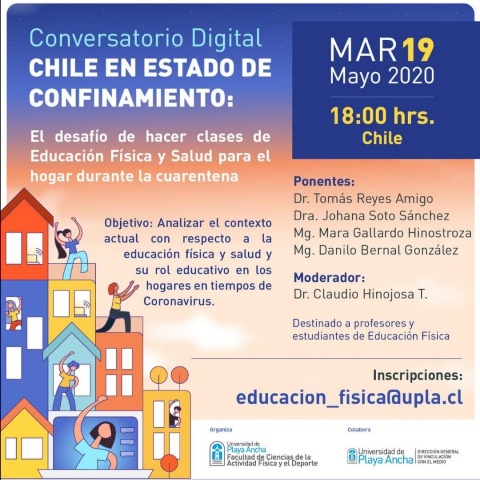 La actividad, a realizarse por la plataforma Zoom el martes 19 de mayo, a las 18 horas, tiene por objetivo analizar el contexto actual chileno con respecto a la educación física y salud, y su rol educativo en los hogares en tiempos de coronavirus.