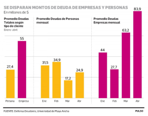 Para el caso de las personas, el análisis dio cuenta de que las personas que realizan el procedimiento de liquidación voluntaria tienen una deuda promedio de $27,4 millones para el trimestre febrero-abril, mientras que en abril subieron 45% totalizando $24.872.382.
