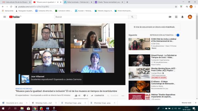 Paradójicamente con todos los museos cerrados se celebró este lunes 18 de mayo el Día Internacional de los Museos. El objetivo de este encuentro virtual organizado por ICOM Chile radicó en crear un espacio para reflexionar y compartir puntos de vista sobre el gran desafío de los museos, que es contribuir a la igualdad, desafío que ahora revela la magnitud de las dificultades que implica resolverlo en medio de la crisis global producto de la pandemia.