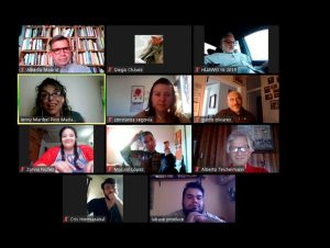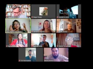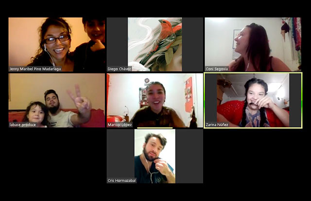 El 28 de abril se inició el trabajo del equipo creativo compuesto por doce artistas, quienes a través de la plataforma zoom comenzaron los tele-ensayos que consisten en rastreos de referentes, contextos, corrientes y texturas. Es decir, se realizan levantamientos de material referido al soporte teórico discursivo de la creación.