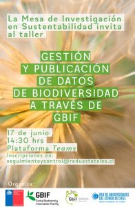 El miércoles 17 de junio a las 14:30 horas se realizará la primera parte del taller “Gestión y publicación de datos de biodiversidad a través de GBIF”. Este hito de la mesa de investigación en Sustentabilidad, en conjunto con el Ministerio del Medio Ambiente, y la Red de Universidades del Estado, se transmitirá a través de la plataforma Teams.