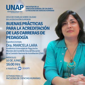 Con un análisis crítico y propositivo acerca de cómo desarrollar procesos de autoevaluación técnicos y humanizadores para las instituciones y, en particular, para las carreras de pedagogía, la Dra. Marcela Lara Catalán, Coordinadora del Programa Magíster en Evaluación Educacional e Investigadora del Centro de Estudios Avanzados de la UPLA, participó del ciclo de charlas sobre calidad en la Educación Superior, organizado por Dirección General de Calidad y la Facultad de Ciencias Humanas de la Universidad Arturo Prat.