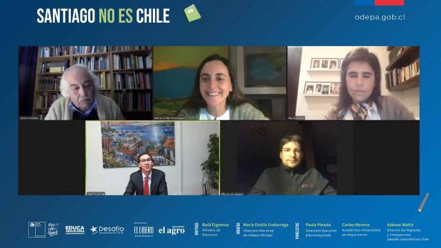 Con la presencia del Ministro Educación, Raúl Figueroa, y más de 300 personas conectadas desde de todas las regiones, se desarrolló una nueva jornada del ciclo de Diálogos Rurales “Santiago no es Chile”, organizado por la Oficina de Estudios y Políticas Agrarias (Odepa) del Ministerio de Agricultura junto a Desafío Levantemos Chile y EducAraucanía.