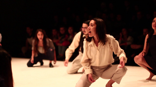 Cantos, poemas y cuerpos, se confrontan en el vacío del espacio. Las diversas fuerzas de esta escenificación fluctúan entre lo hostil, lo amable, lo paradójico y lo irónico. Las citas y referencias crean una polifonía compuesta por extractos de Raúl Zurita, Gonzalo Millán, Alejandra Pizarnik, Umberto Eco, Andrei Tarkovski, Fedor Dostoiesvski, George Orwell, Henrik Ibsen, Edward Bond, Jacek Zmyslowski, Jerzy Grotowski, entre otros.