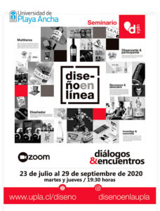 16 ponencias, de 21 experimentados diseñadores del país, darán vida al seminario “Diseño en línea” que la carrera de Diseño de la Facultad de Arte UPLA lanza este jueves 23 de julio (19:30 horas) a través de la plataforma Zoom.