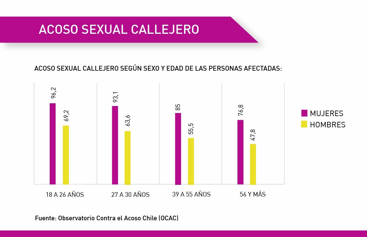 En cuanto al acoso sexual callejero, la investigación reveló que el 96,2 por ciento de las mujeres entre 18 y 26 años, ha sido víctima de este tipo de acoso.