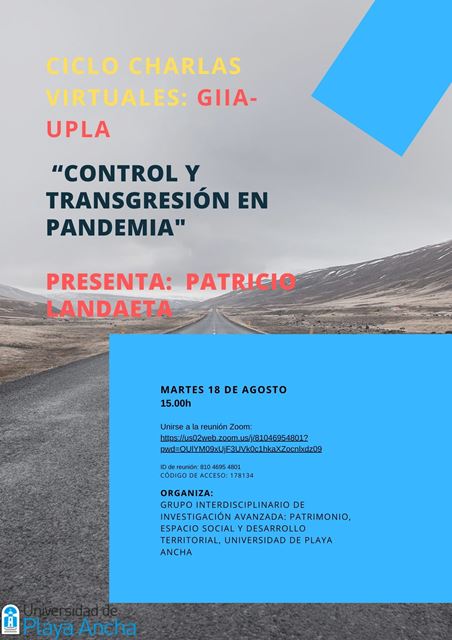 El Grupo Interdisciplinario de Investigación Avanzada: Patrimonio, Espacio Social y Desarrollo Territorial (GIIA) de la Universidad de Playa Ancha, continúa su ciclo de charlas virtuales con el objetivo de abrir un espacio de diálogo en torno al impacto de la pandemia en los territorios.