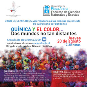 Continuando con el ciclo de seminarios “Acercándonos a la ciencia en contextos de confinamiento por pandemia” convocado por la Facultad de Ciencias Naturales y Exactas de la Universidad de Playa Ancha, el jueves 20 de agosto, a las 17:30 se efectuará el segundo encuentro virtual.