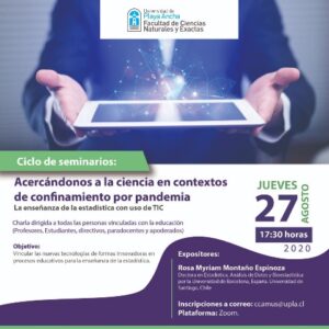 El tercer seminario del ciclo “Acercándonos a la ciencia en contextos de confinamiento por pandemia”, realizará la Facultad de Ciencias Naturales y Exactas de la Universidad de Playa Ancha, el jueves 27 de agosto, a las 17:30 horas, a través de la plataforma Zoom.