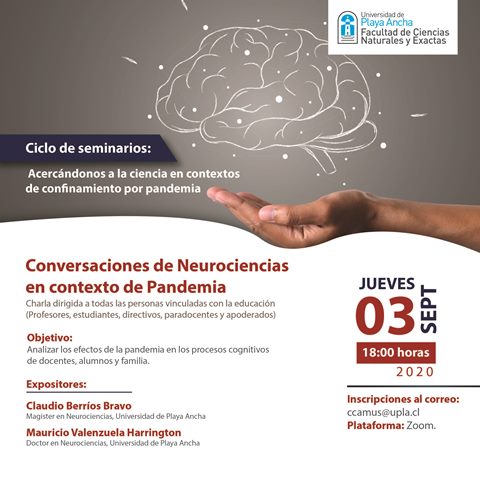 “Conversaciones de neurociencias en contexto de pandemia” será el tema que abordarán los académicos de la Universidad de Playa Ancha y especialistas en neurociencias, Mg. Claudio Berríos Bravo, y el Dr. Mauricio Valenzuela Harrington.