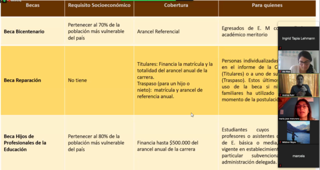 Durante la actividad se destacó, además, la importancia de que todos los estudiantes que deseen ingresar a la educación superior deben tramitar su incorporación al Registro Social de Hogares, herramienta que les permitirá acceder a los diferentes beneficios que otorga el Estado para financiar sus estudios. La próxima charla quedó agendada para el 7 de octubre a las 11 horas, cuya temática y link de inscripción serán anunciados próximamente.