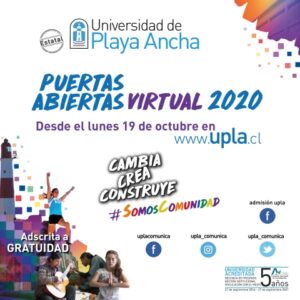 A causa de la pandemia por COVID-19, la institución que funciona telemáticamente desde marzo, desarrollará esta tradicional actividad a través del sitio www.upla.cl, al que se podrá acceder desde el 19 de octubre hasta los primeros días de enero de 2021, según informó la directora de Admisión y Selección de Alumnos de la UPLA, Claudia Valenzuela Mateluna.