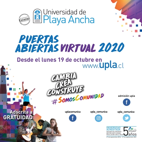 A causa de la pandemia por COVID-19, la institución que funciona telemáticamente desde marzo, desarrollará esta tradicional actividad a través del sitio www.upla.cl, al que se podrá acceder desde el 19 de octubre hasta los primeros días de enero de 2021, según informó la directora de Admisión y Selección de Alumnos de la UPLA, Claudia Valenzuela Mateluna.