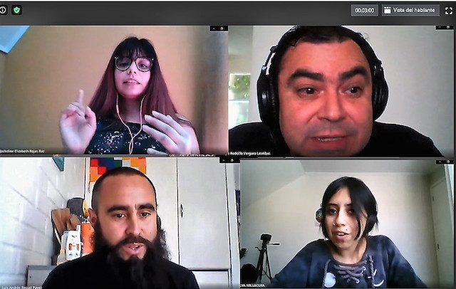 Participaron como invitados los exalumnos profesor Luis Rossel, director de la Escuela San Judas Tadeo, perteneciente a CORMUVAL (Corporación Municipal de Valparaíso) y las y los expracticantes profesionales Jackeline Rojas, Sabina Silva, Martín Suárez y Belén Sánchez quienes intercambiaron opiniones con las y los estudiantes sobre los desafíos pedagógicos de la docencia en emergencia sanitaria.